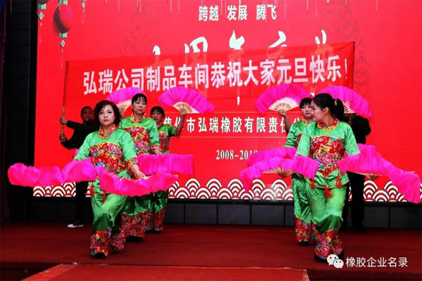 12月31日,焦作市弘瑞橡膠有限公司在焦作蘇州園酒店舉辦隆重的十周年廠慶活動。車間集體舞蹈、才藝演唱、喜劇小品、老式的三句半歡聲一片,員工們個個都以飽滿的熱情慶祝我們“弘瑞人”自己的節日。來自國內各地嘉賓、客戶及供應商與廠員工300多人共聚一堂,歡慶這一盛典。