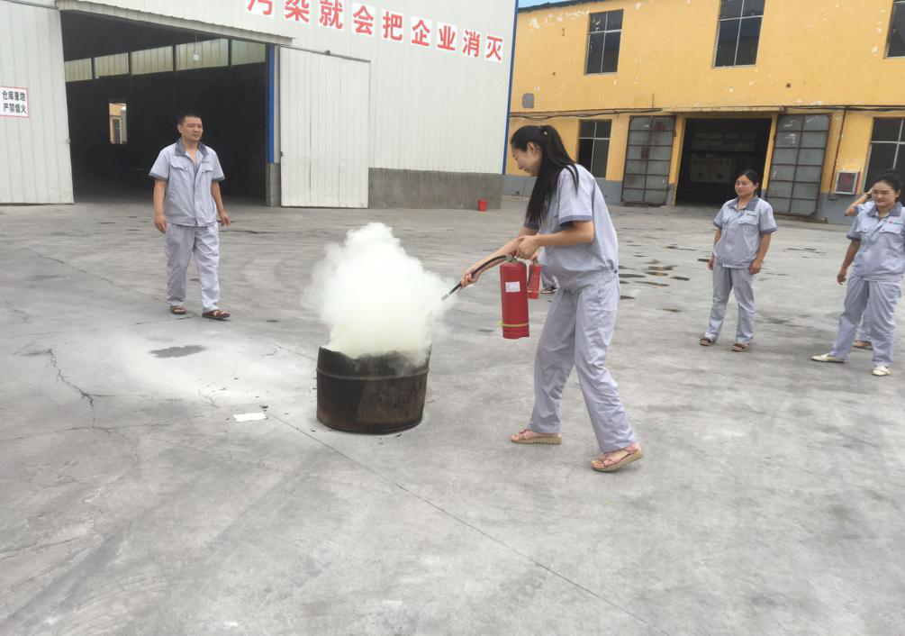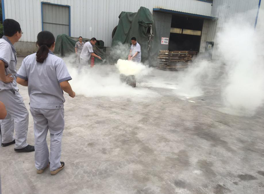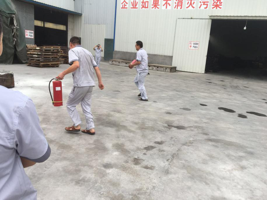 7月9號上午8時00分,天氣晴好,風(fēng)力不大,根據(jù)事先安排,由安全員大聲喊,成品庫房外有起火,快速施救,聽到喊聲,機關(guān)人員立即放下手中工作,跑到失火地方,按平時教育分工,用干粉滅火器滅火,員工按平時學(xué)習(xí)的使用方法,快速做到滅火,演練比較成功,隊員僅用5分鐘即趕到現(xiàn)場,10分鐘演習(xí)結(jié)束。